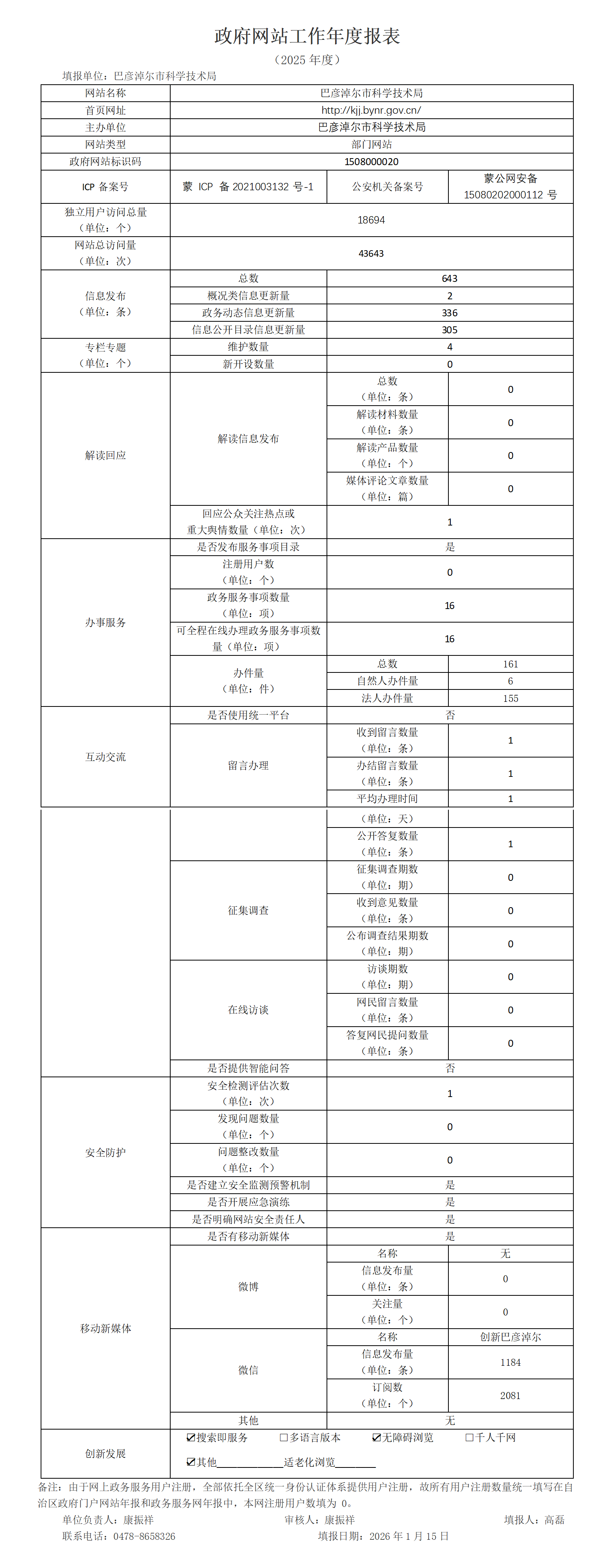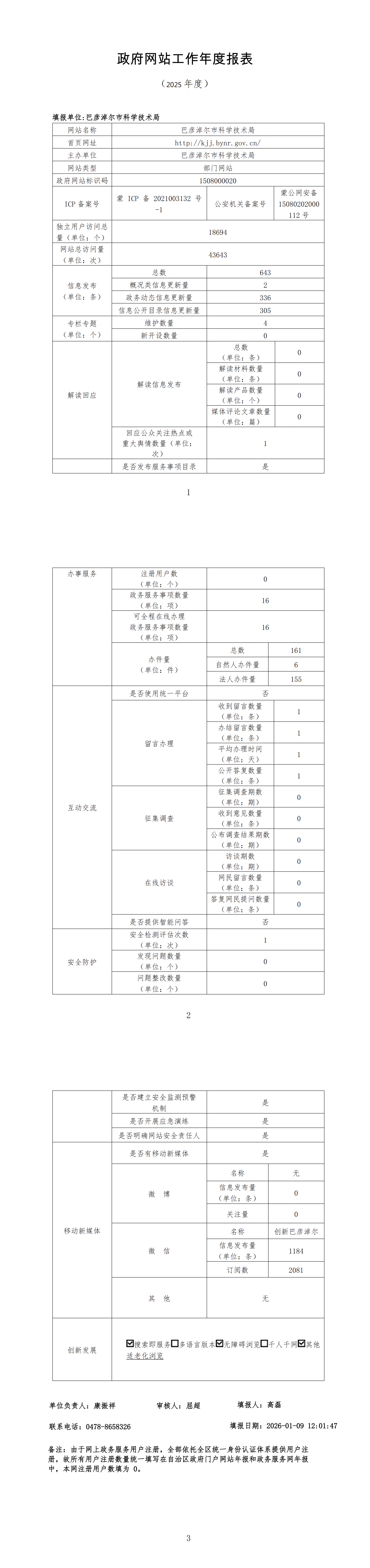 2025年巴彦淖尔市科学技术局政府网站工作年度报表