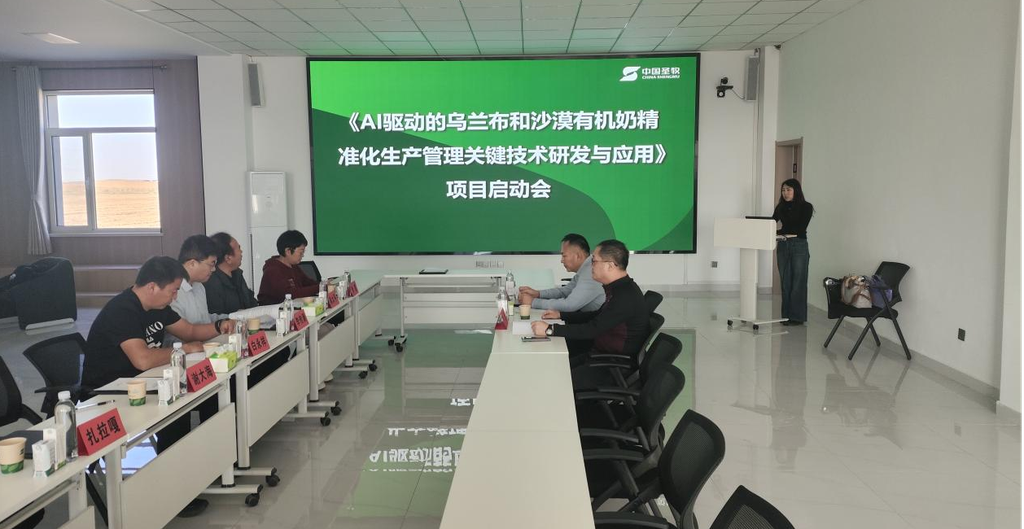 2026年2月6日,由巴彦淖尔市科技局指导、内蒙古圣牧控股有限公司与北京工业大学联合承担的2025年自治区重点研发与成果转化(科技合作)项目——“AI驱动的乌兰布和沙漠有机奶精准化生产管理关键技术研发与应用”在磴口县晟牧智慧牧业B26牧场正式启动。巴彦淖尔市科技局党组成员、副局长朱峰及相关科室负责人出席会议。